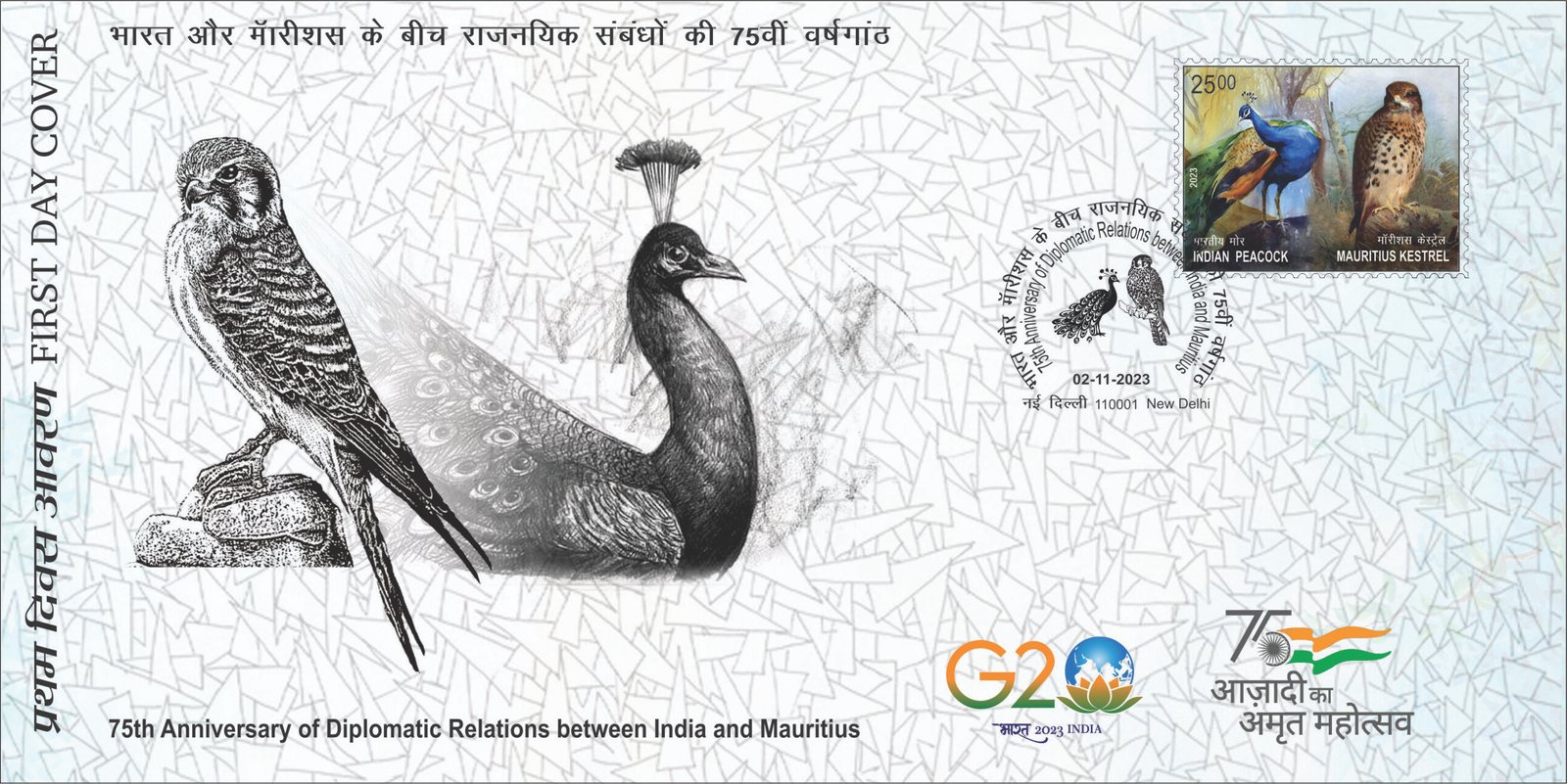 To mark 75 years of diplomatic relations between India and Mauritius, a Joint Commemorative Stamp Issue has been released by the Department of Posts (India) and Mauritius Post. Featuring the Indian Peacock and the Mauritius Kestrel, the stamp highlights not only the countries’ enduring friendship but also their commitment to preserving natural heritage.